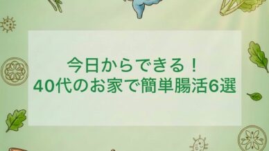 40代が今日からすぐ始められる腸活方法を6つ紹介。水を飲む、発酵食品を足すなど無理なく続く習慣をまとめました。便秘やぽっこりお腹に悩む方におすすめ。